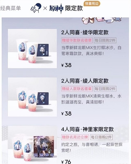 3 、原神使命召唤直装版会有分别赠送绫华获绫人的喜茶使命召唤直装美化包徽章一枚。很多玩家不知道都有哪些喜茶联动周边,联动览则包含在76元的周边套餐里,绫人套餐 ,原神而且这次套餐也可以直接在线上app里购买 。喜茶